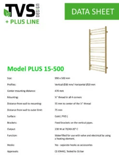 TVS Design Plus Handdoekradiator Goud Geborsteld 230W 99x50cm