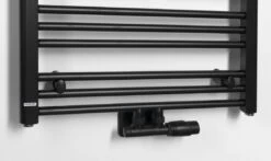 Bij een centrale verwarming met ventiel en thermostaatknop houdt de geïntegreerde thermostaat de temperatuur op peil. De thermostaatknop moet zich bij de warmwaterinlaat bevinden. Vergeet niet de plug erbij te bestellen om de andere aansluiting dicht te maken.