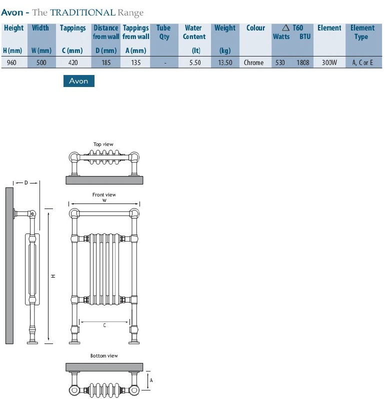 De Eastbrook Avon combineert mooi chroom met klassiek wit. De radiator heeft een hoge capaciteit van 530 watt. Tevens heeft de radiator ruimte voor handdoeken door de handdoekbeugel. Deze radiator staat prachtig aan de wand naast een vrijstaand band met een klassieke vorm. Alle Eastbrook radiatoren zijn gekeurd volgens de EN422 standaarden en hebben 5 jaar garantie. Maak uw nieuwe design radiator helemaal compleet met een aansluitsetje. U kunt deze vinden onder de toebehoren.