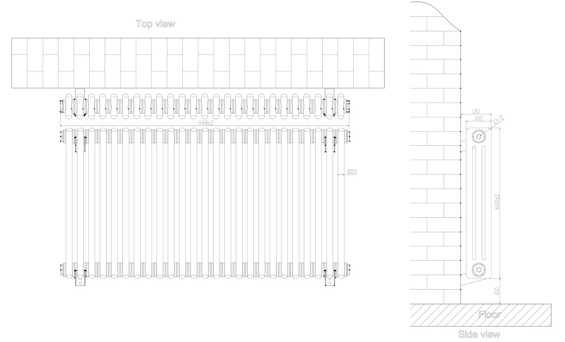De Rivassa radiator is te bestellen in meerdere varianten. Deze radiator heeft 3 kolommen, waardoor ‘ie een slanker model heeft dan bijvoorbeeld de 4 koloms radiator. Het verschil tussen deze radiatoren is dat de 2 koloms verwarmingen een lagere capaciteit hebben dan de 4 koloms. De 3 koloms radiator zit er dus precies tussenin!