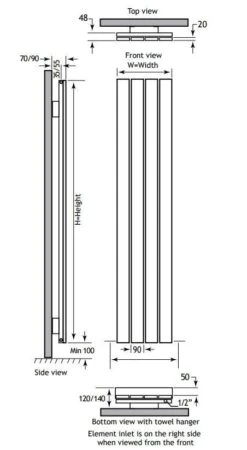 Doordat de radiator gemaakt is van aluminium, geleid het zeer goed en snel de warmte. Tevens is het een licht materiaal en dus eenvoudig te plaatsen. Doordat de spijlen verticaal verwerkt zijn, neemt het weinig ruimte in beslag. Om toch ergens de handdoeken overheen te kunnen hangen, zijn er speciale handdoekbeugels ontworpen. Bij het model van 60cm hoogte kan 1 handdoekbeugel geplaatst worden. Bij het model van 180cm hoogte kunnen 3 beugels geplaatst worden.