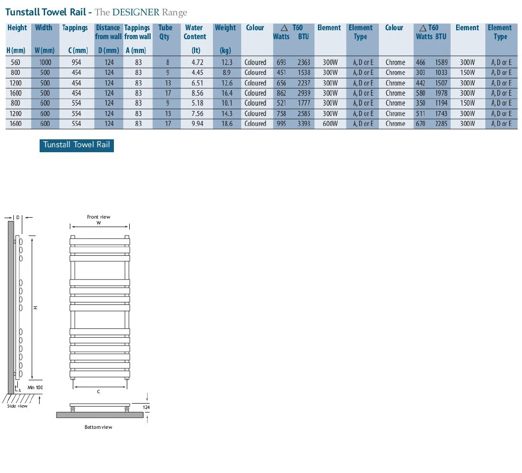 De Tunstall is beschikbaar in een groot aantal modellen. Van een hoge verticale radiator tot een compact horizontaal model voor onder het raam. Daarnaast kun je ook nog kiezen voor een handdoek model voor in de badkamer.