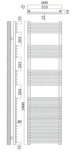 Uitvoering: Design model, waarbij de horizontale buizen niet tussen (standaard), maar op de verticale buizen zijn geplaatst.