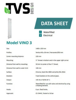 De Vino radiator is een slanke verticale handdoekverwarmer. Aan de radiator zitten haken, waar je jouw handdoek aan kunt ophangen. In totaal zitten er 6 haken op deze radiator, verdeeld over 2 rijen. Door het elegante design kan deze radiator ook gebruikt worden in de keuken voor bijvoorbeeld de theedoeken. De buizen hebben ieder een D-vorm.